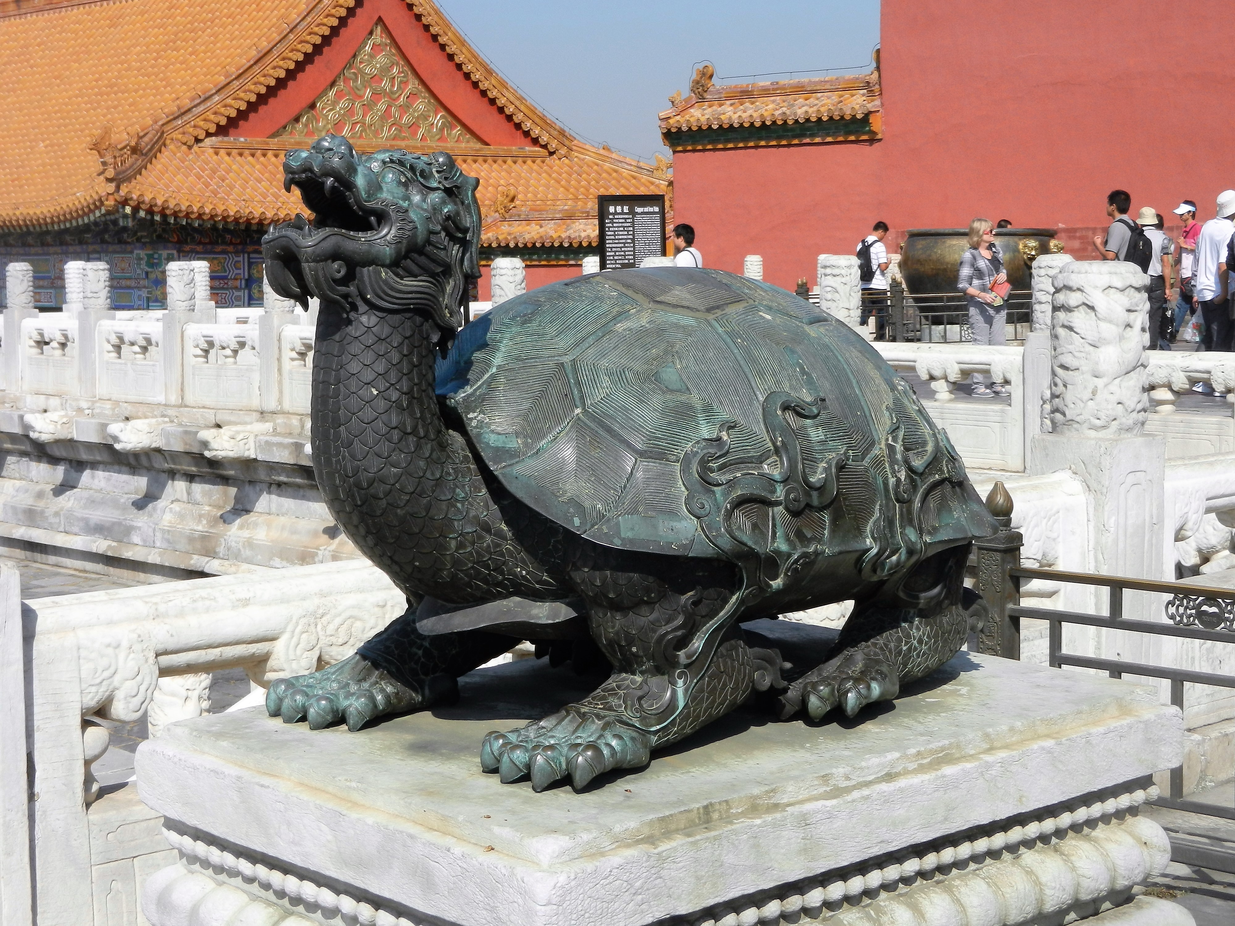 statutes of lions, a turtle, and a crane, as well as a grain measure,