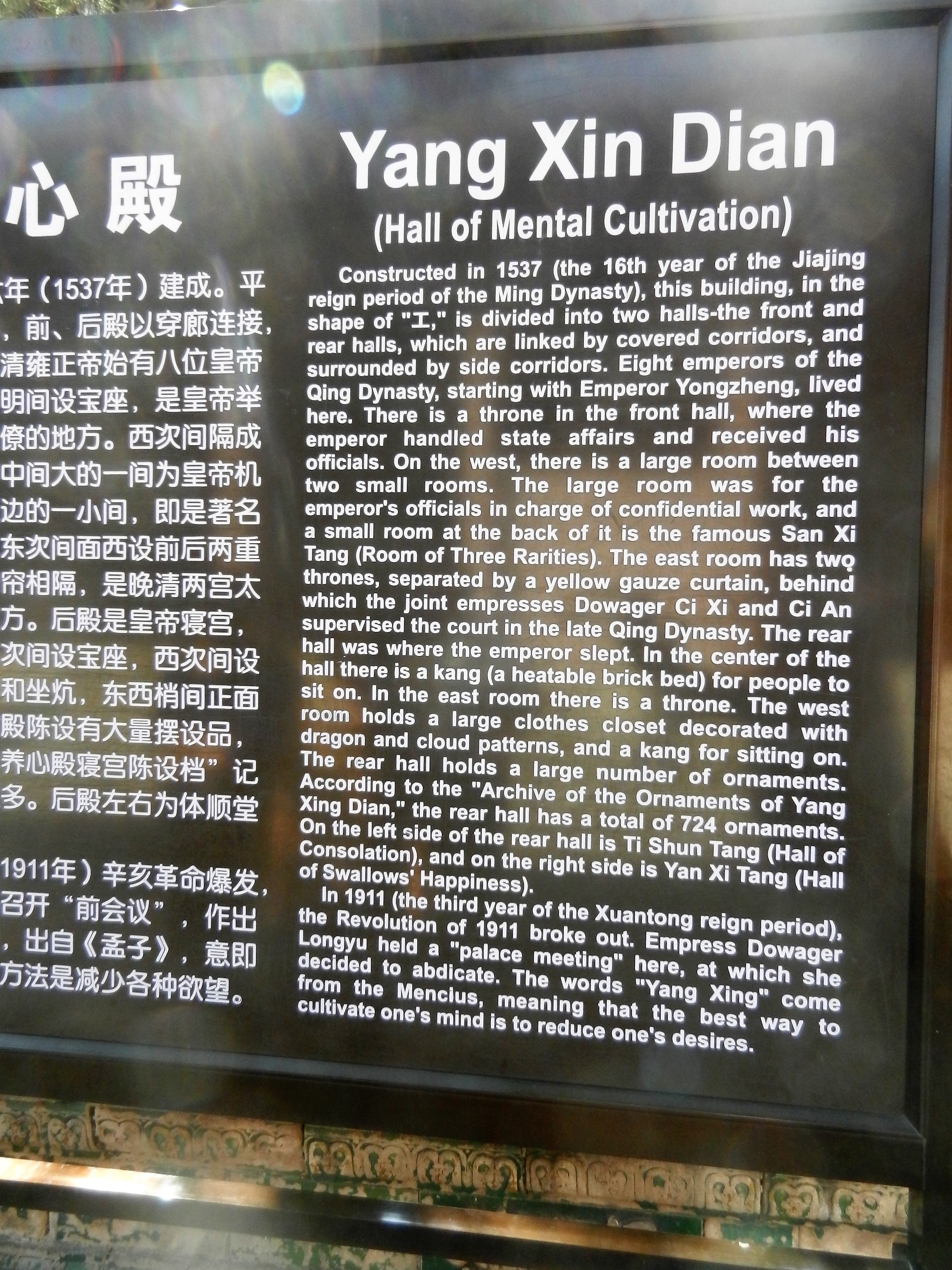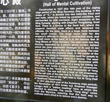 Hall of Mental Cultivation. Some of the emperors lived there the